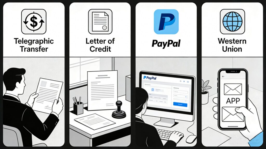 Advantages: Instant payment confirmation, simple operation, and buyer protection policies. Considerations: Higher transaction fees (compared to T/T) for large amounts; daily transaction limits may apply. Not recommended for high-value orders due to fee costs.