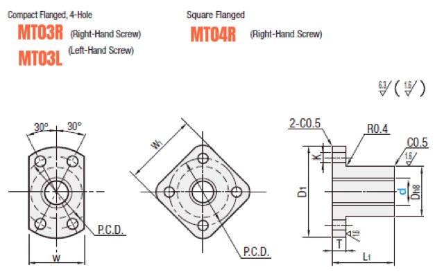 Precision brass flanged lead screw nuts, direct replacement for MISUMI MTS series (MTSFR/MTSCR/MTSPFR). Round/square flange with double-sided cut, made of high-quality brass, compliant with JIS standard. Exact dimension matching, excellent wear resistance and high dynamic thrust capacity, perfect for CNC, linear motion systems and industrial automation equipment. Direct drop-in fit, no modification needed.