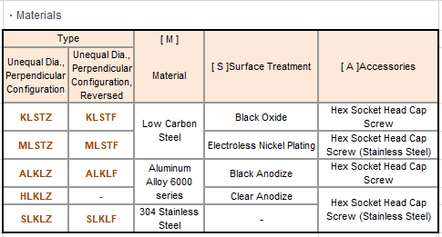 Unequal Dia., Perpendicular Configuration, Reversed:The fastener screws are inserted in the opposite side of the above Unequal Dia., Perpendicular Configuration.